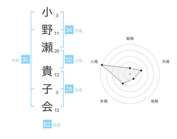 小野瀬 貴子会さんを姓名の画数から五運を鑑定