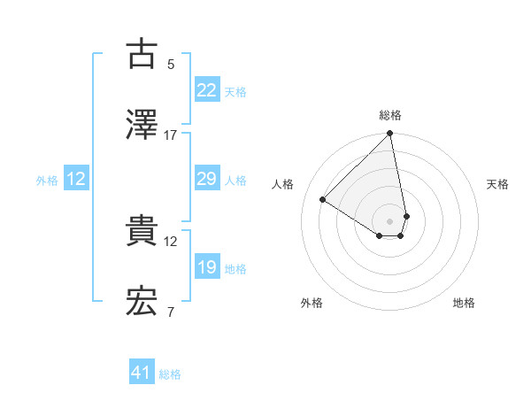 古澤 貴宏さんの総格は41画の5点!