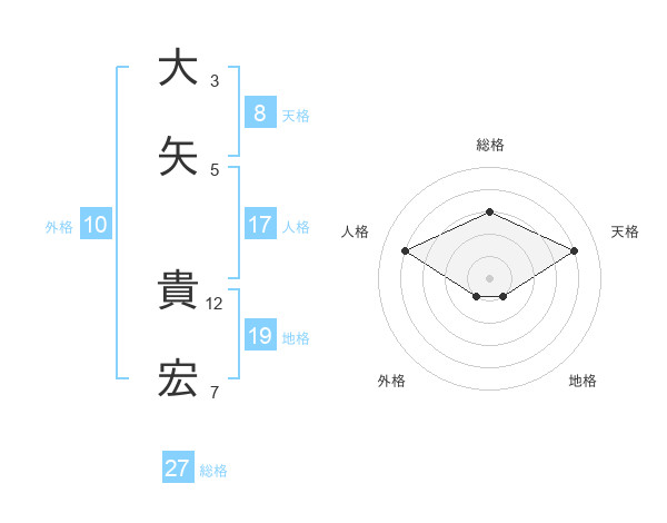 大矢 貴宏さんを姓名の画数から五運を鑑定