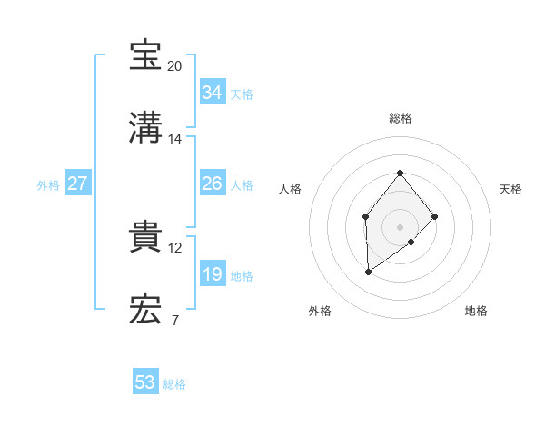 宝溝 貴宏さんの総格は53画の3点!