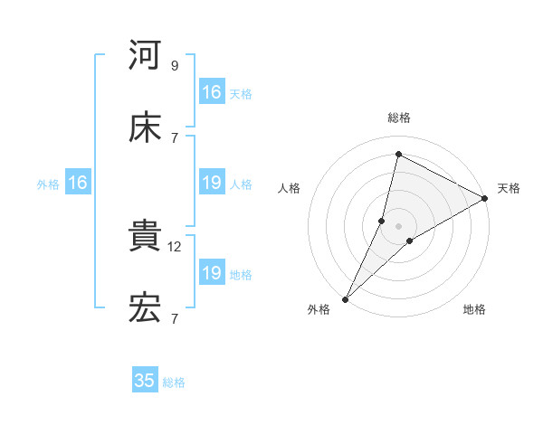 河床 貴宏さんを姓名の画数から五運を鑑定