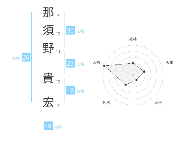 那須野 貴宏さんの総格は49画の2点!