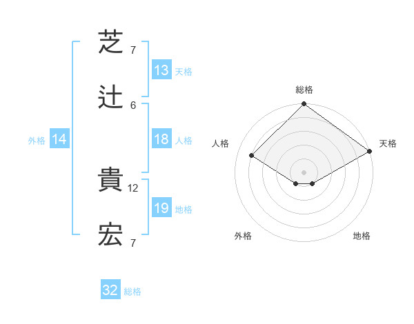 芝辻 貴宏さんの総格は32画の5点!