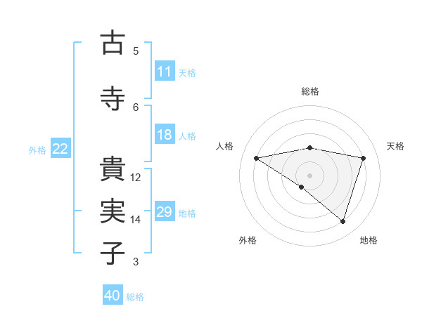 古寺 貴実子さんを姓名の画数から五運を鑑定