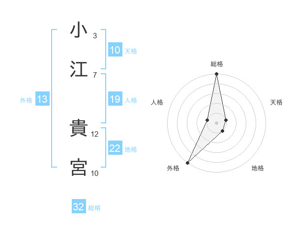 小江 貴宮さんを姓名の画数から五運を鑑定