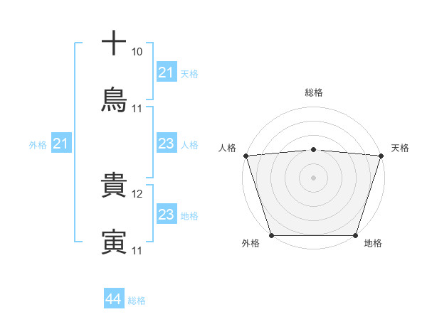 十鳥 貴寅さんを姓名の画数から五運を鑑定