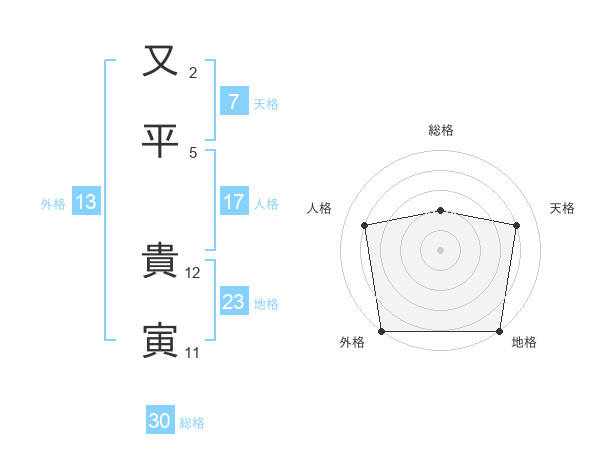 又平 貴寅さんを姓名の画数から五運を鑑定