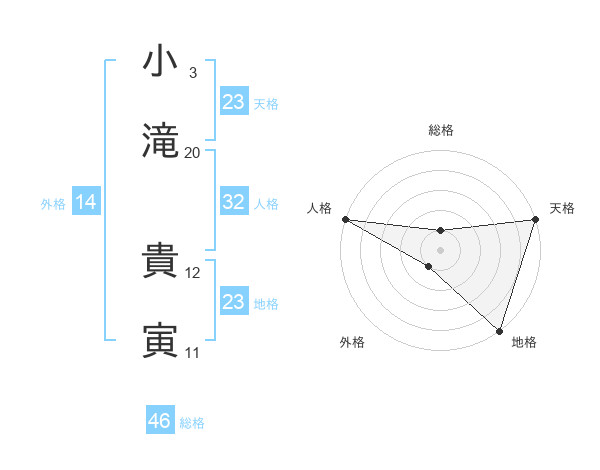 小滝 貴寅さんの地格は23画の5点!