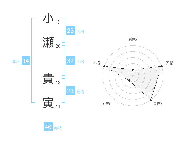 小瀬 貴寅さんの天格は23画の5点!