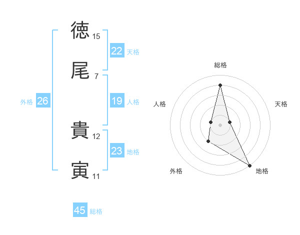 徳尾 貴寅さんの総格は45画の4点!
