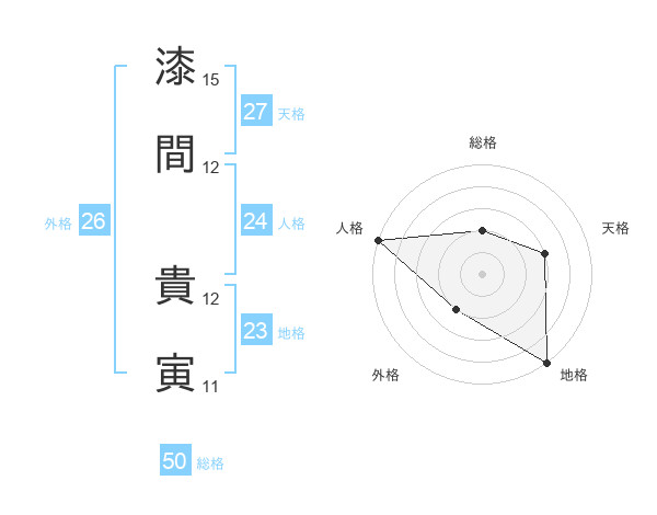 漆間 貴寅さんの総格は50画の2点!