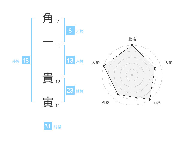 角一 貴寅さんを姓名の画数から五運を鑑定