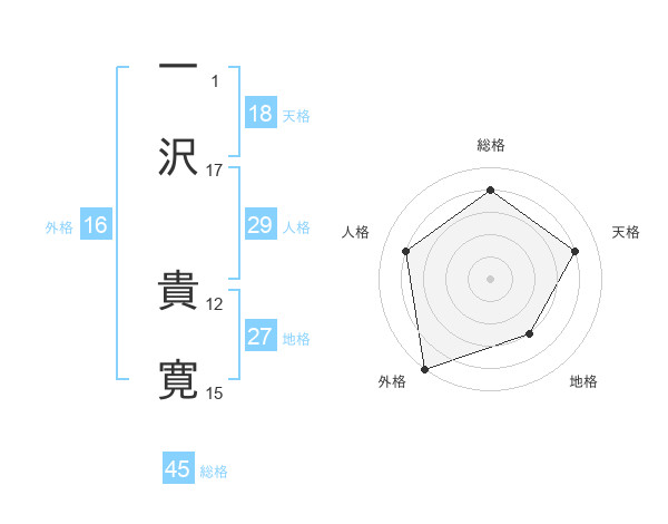一沢 貴寛さんを姓名の画数から五運を鑑定