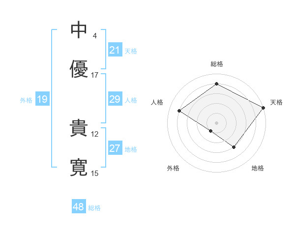 中優 貴寛さんを姓名の画数から五運を鑑定