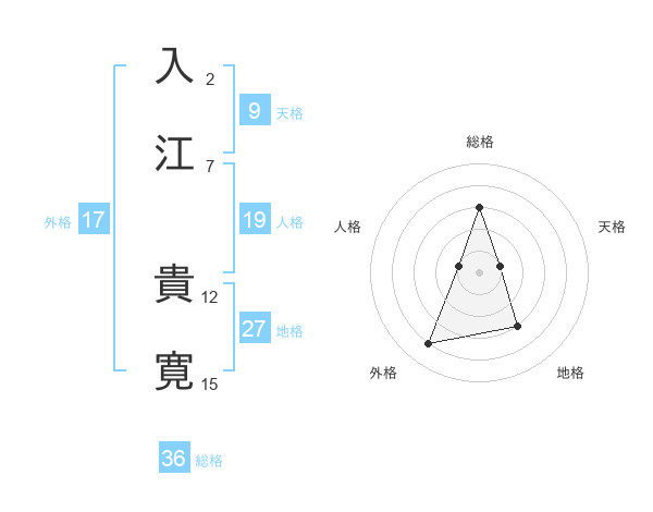 入江 貴寛さんを姓名の画数から五運を鑑定