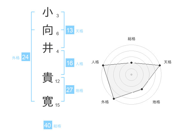 小向井 貴寛さんの外格は24画の5点!