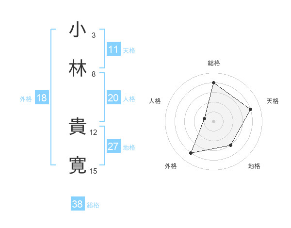 小林 貴寛さんを姓名の画数から五運を鑑定