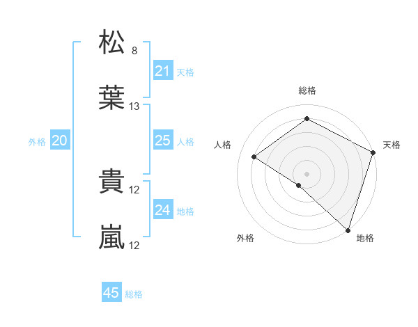 松葉 貴嵐さんを姓名の画数から五運を鑑定