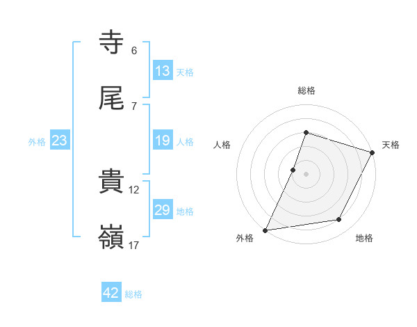 寺尾 貴嶺さんの外格は23画の5点!