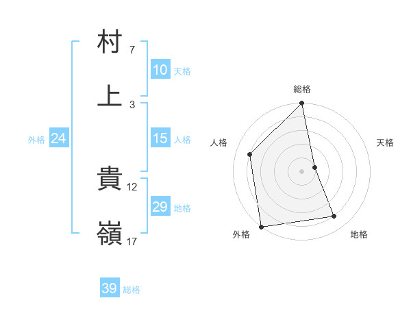 村上 貴嶺さんを姓名の画数から五運を鑑定