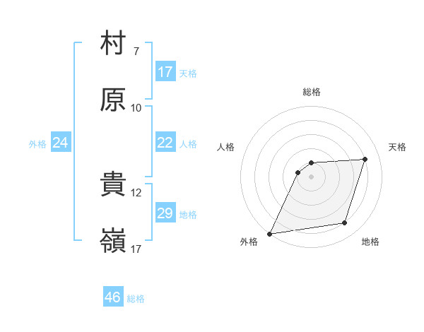 村原 貴嶺さんの外格は24画の5点!
