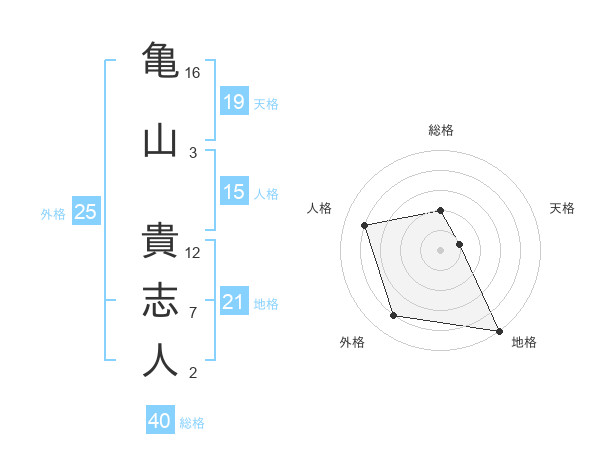 亀山 貴志人さんを姓名の画数から五運を鑑定