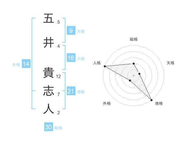 五井 貴志人さんを姓名の画数から五運を鑑定