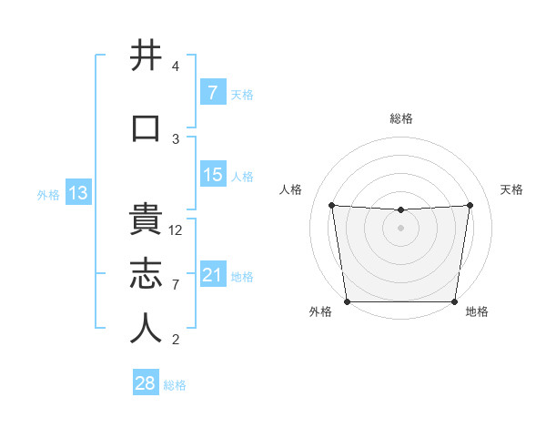 井口 貴志人さんの総格は28画の1点!