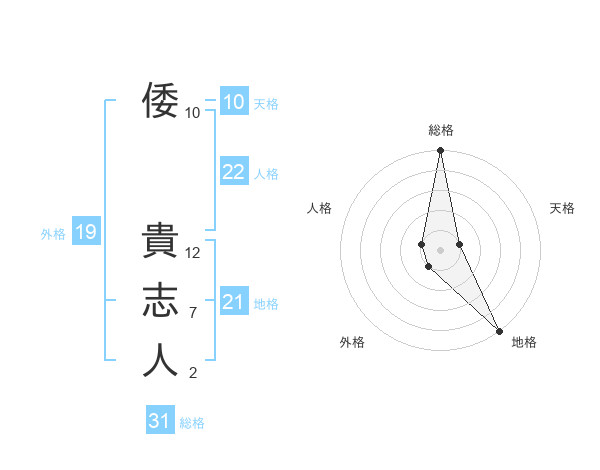 倭 貴志人さんを姓名の画数から五運を鑑定