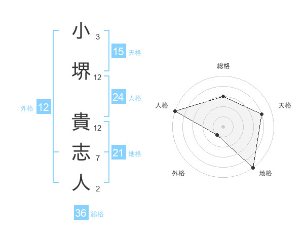 小堺 貴志人さんを姓名の画数から五運を鑑定