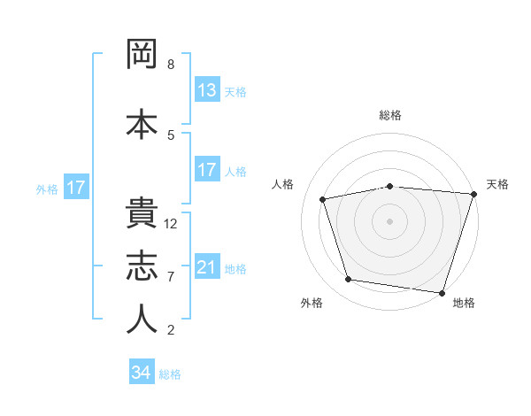 岡本 貴志人さんを姓名の画数から五運を鑑定