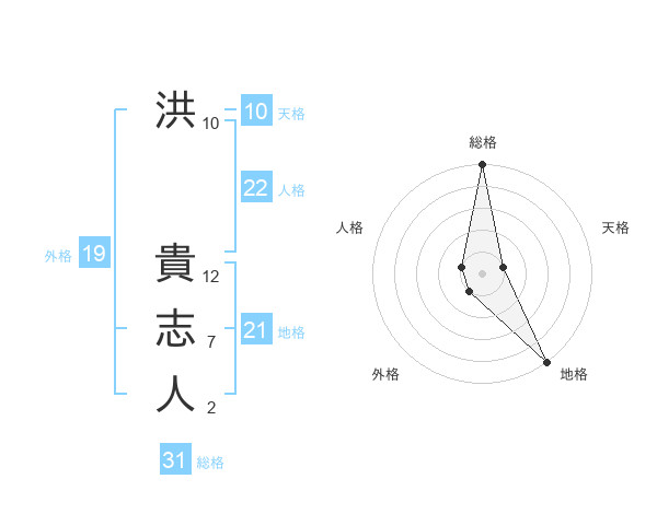 洪 貴志人さんを姓名の画数から五運を鑑定