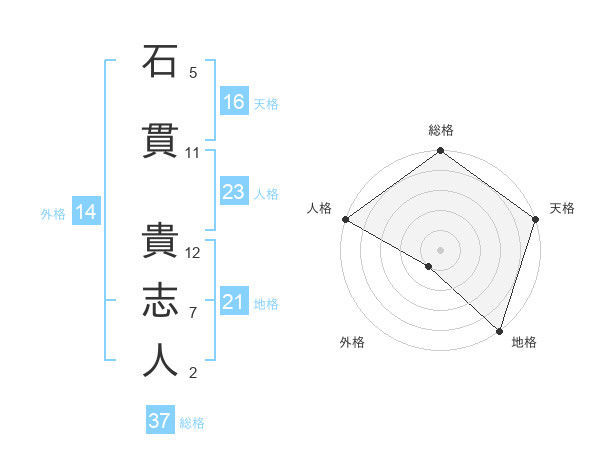 石貫 貴志人さんを姓名の画数から五運を鑑定
