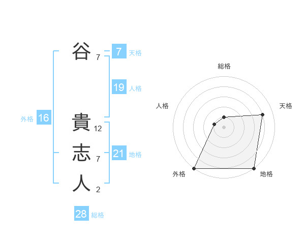 谷 貴志人さんを姓名の画数から五運を鑑定