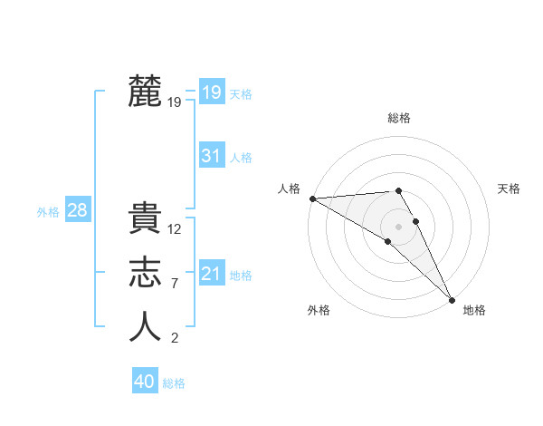 麓 貴志人さんの総格は40画の2点!
