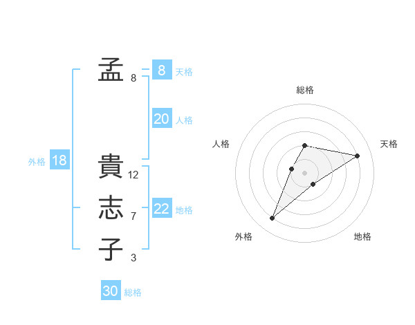 孟 貴志子さんを姓名の画数から五運を鑑定