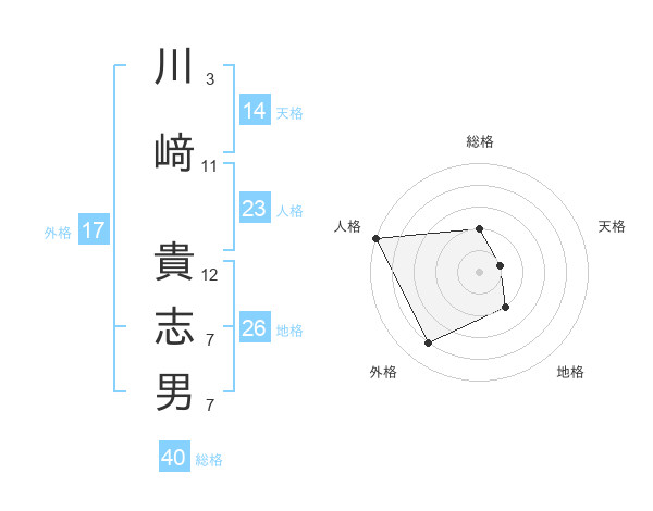 川﨑 貴志男さんを姓名の画数から五運を鑑定