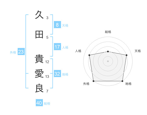 久田 貴愛良さんを姓名の画数から五運を鑑定