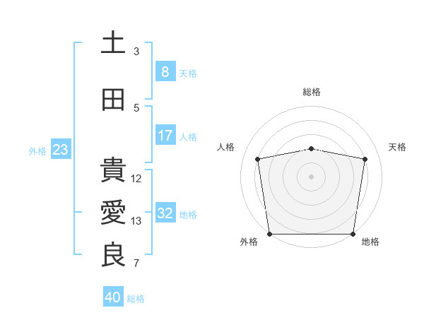 土田 貴愛良さんを姓名の画数から五運を鑑定
