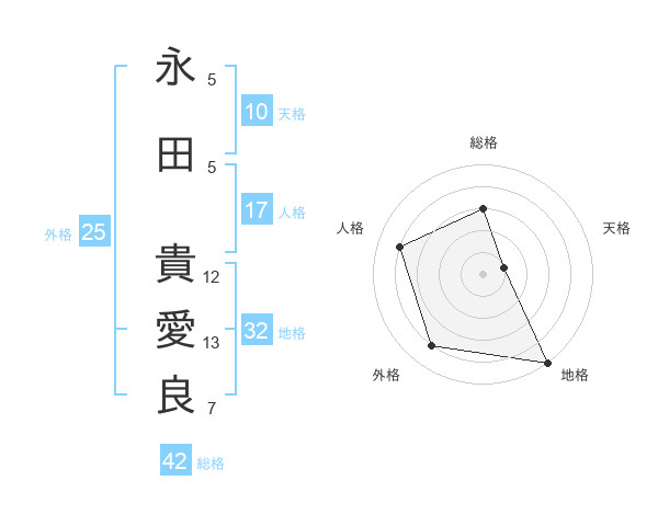 永田 貴愛良さんの総格は42画の3点!