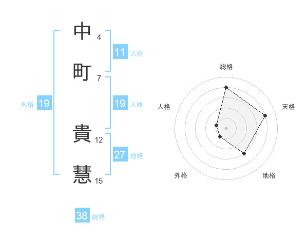 中町 貴慧さんの総格は38画の4点!