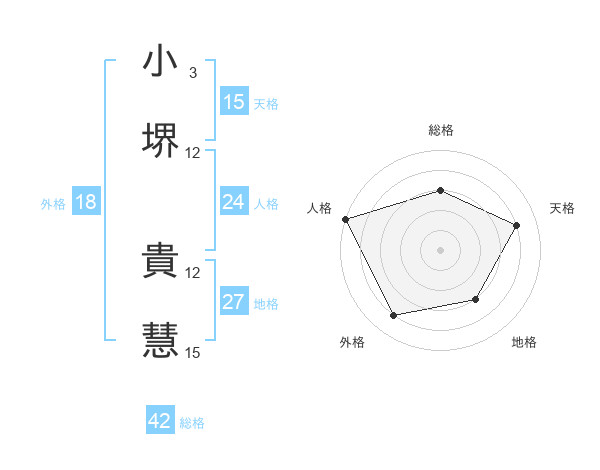 小堺 貴慧さんの総格は42画の3点!