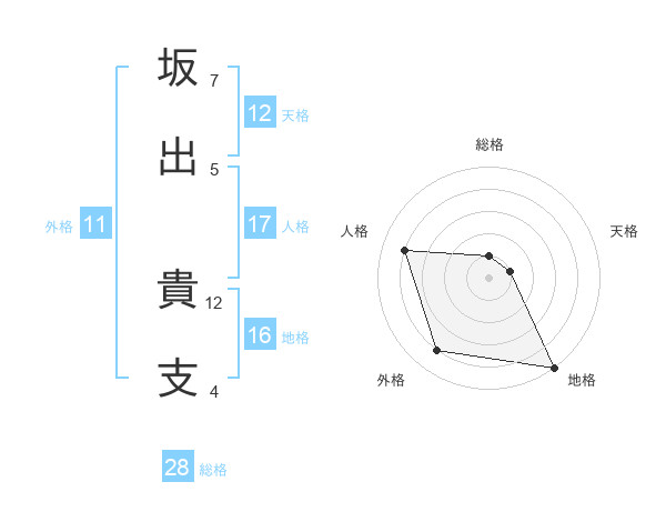 坂出 貴支さんを姓名の画数から五運を鑑定