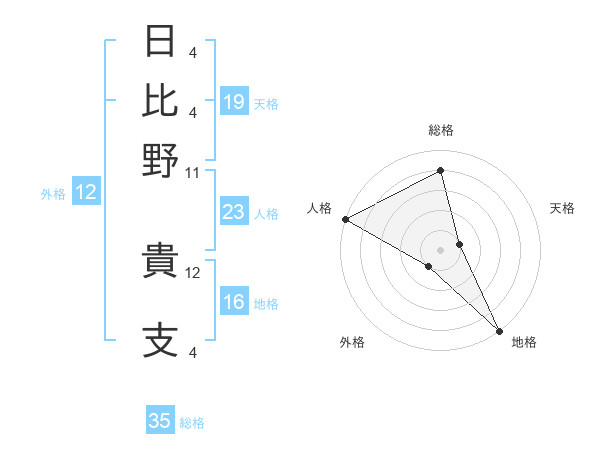 日比野 貴支さんの総格は35画の4点!