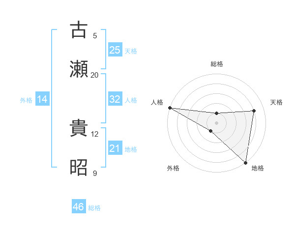 古瀬 貴昭さんの総格は46画の1点!