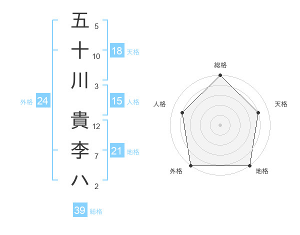 五十川 貴李ハさんを姓名の画数から五運を鑑定