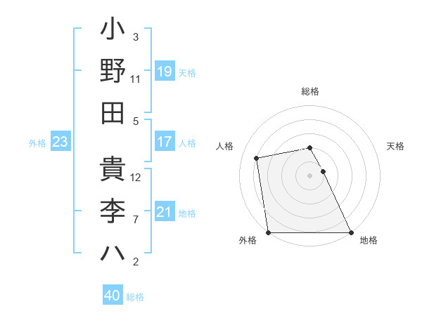 小野田 貴李ハさんを姓名の画数から五運を鑑定