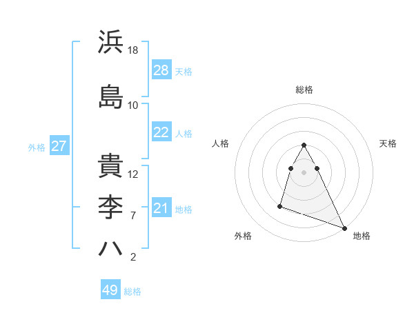 浜島 貴李ハさんの総格は49画の2点