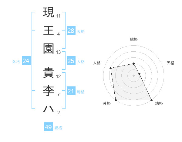 現王園 貴李ハさんを姓名の画数から五運を鑑定