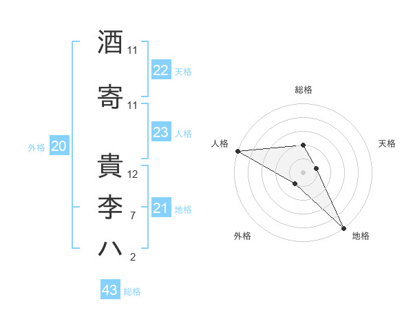 酒寄 貴李ハさんを姓名の画数から五運を鑑定